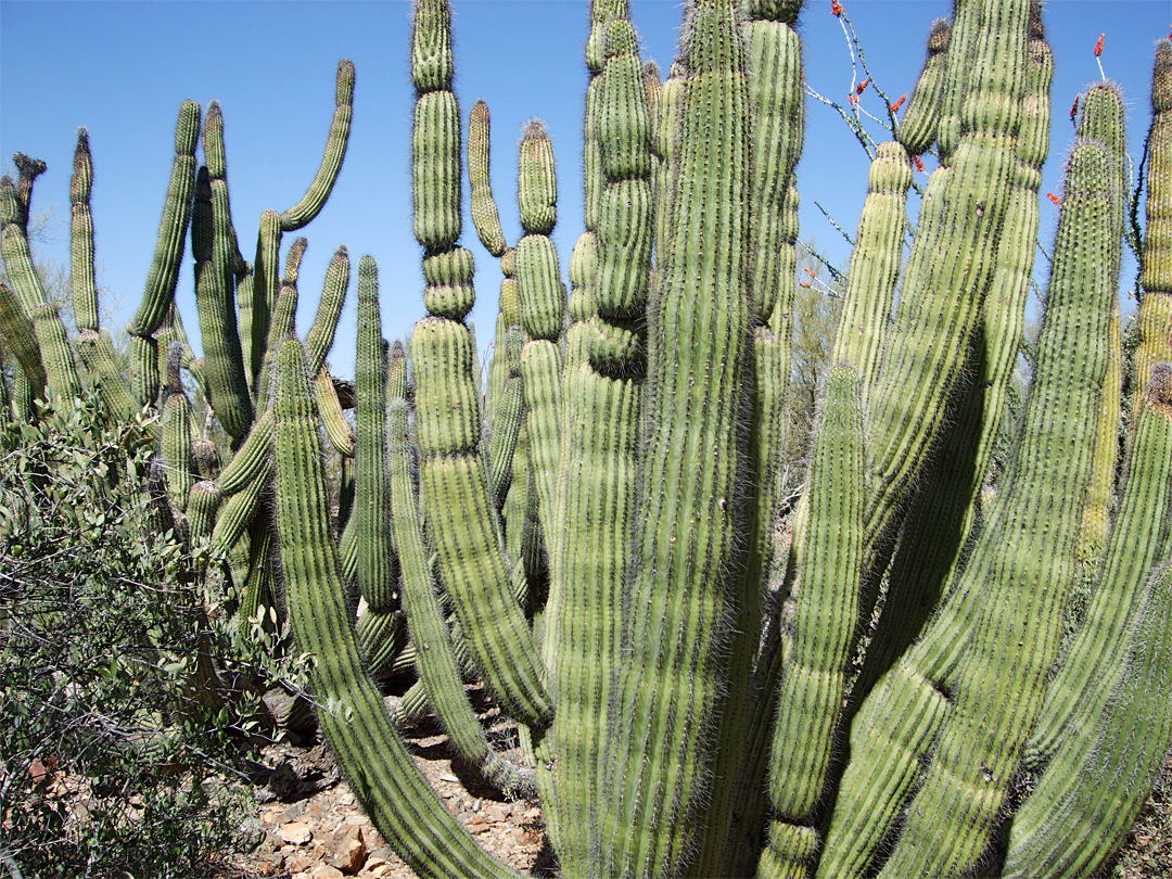 Big cluster of the organ pipe cactus (stenocereus thurberi)