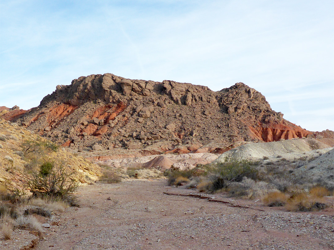 The dry wash, below a grey and red hill; near the junction with Razorback Wash