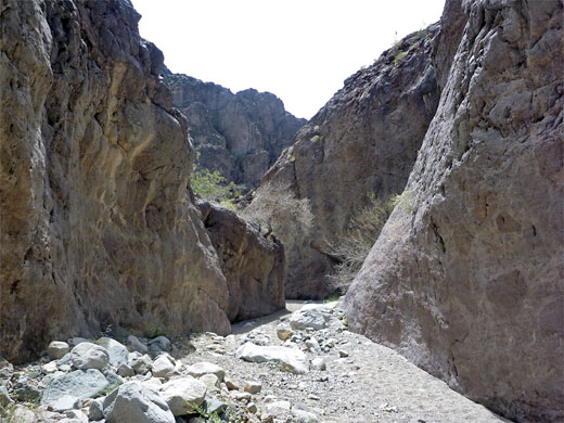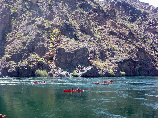 Willow Beach on the Arizona side - this has a fish hatchery, a small beach and a picnic area but no camping. It also tends to have rather unpleasant smelly water. The steep slopes of the Black and Eldorado mountain ranges prevent any other vehicular access to the lake, which north of Cottonwood Basin is quite narrow, little different in appearance to a rather wide river. The lakeside can be reached by several trails, however, of which the easiest and most popular is along