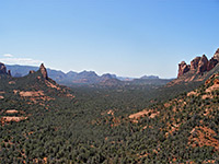 Sedona is situated at the southern end of the canyon where the cliffs open out, and provides a base for exploring the surrounding lands, which include many other canyons and an extensive, scenic red-rock wilderness in all directions.
