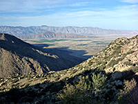 Low desert, badlands and narrow canyons, close to the Salton Sea and crossed by road S22; two main features are the Santa Rosa Mountains