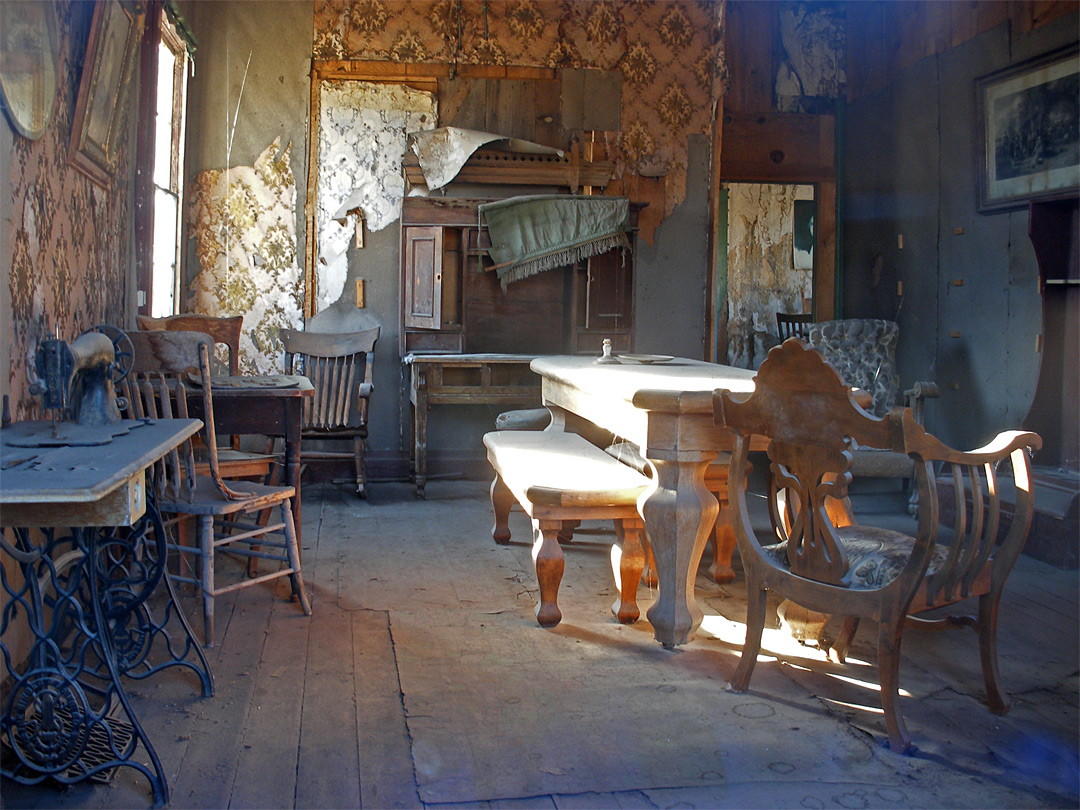 The dining room of the Lottie Johl House, along Main Street in Bodie