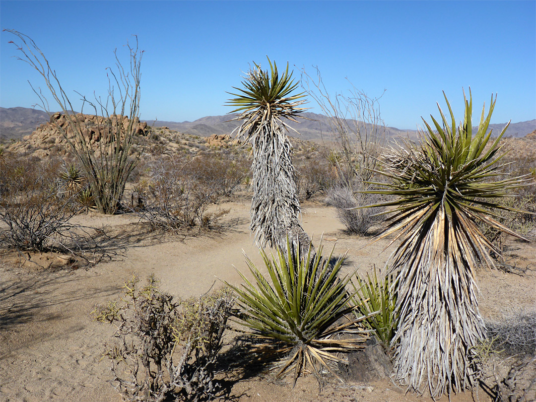 Ocotillo and yucca, next to the trail