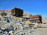 On the road to Keys View, a side track branches westwards ending after a mile at a small parking area at the edge of 5,178 foot Lost Horse Mountain, from where a trail (also once a vehicle track) ascends to the summit, en route passing several restored buildings from the Lost Horse Mine