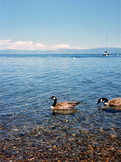 Still, there are plenty of publicly accessible, secluded places close to the waters edge and vast unspoilt wilderness away from the lake, especially to the north and west - Lake Tahoe is surrounded on most sides by high granite mountains with peaks well above the treeline, some covered by patches of snow that persist all year. The mountains are a very popular skiing destination during winter, with 14 ski centers that start to open in late October and some continue until May.