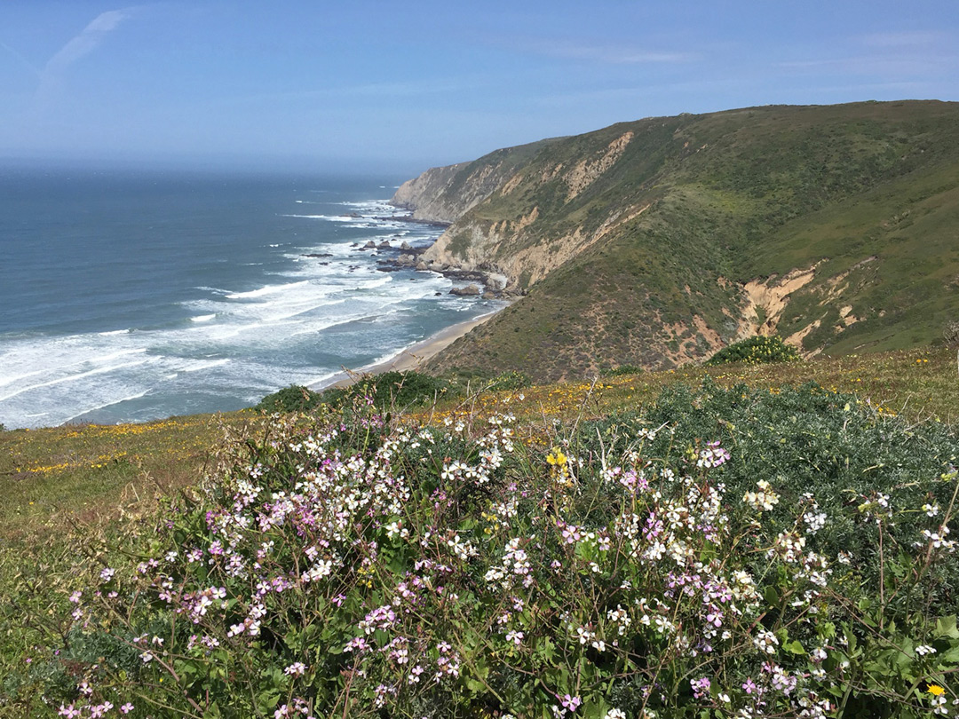 Keywords: Point Reyes National Seashore, the Tomales Point Trail, California, wildflowers, Pacific Ocean, beaches, ravines, coastline, cliffs, pink flowers