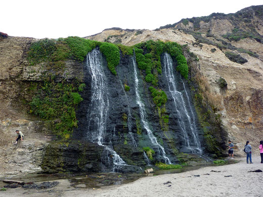 Dillon Beach, 25 miles north of Bear Valley along Route 1, where dispersed camping is provided on a large area of sand dunes and grassy fields.