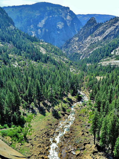John Muir Trail. From here a right turn leads directly to the river after another 5 minutes walking slightly downhill, after which the path goes back down the south side of the river and eventually to the main road in Yosemite Valley, providing an alternative route to the waterfall (though one that does not pass close to Vernal Fall). A left turn leads to more junctions with trails that go, amongst many other places, to Half Dome and Clouds Rest, while the main route is to Tuolumne Meadows.