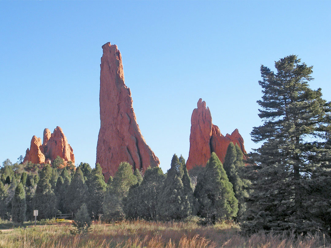 Keywords: Garden of the Gods, Colorado, red rocks, Colorado Springs, sandstone strata, Rocky Mountains, trees, bushes