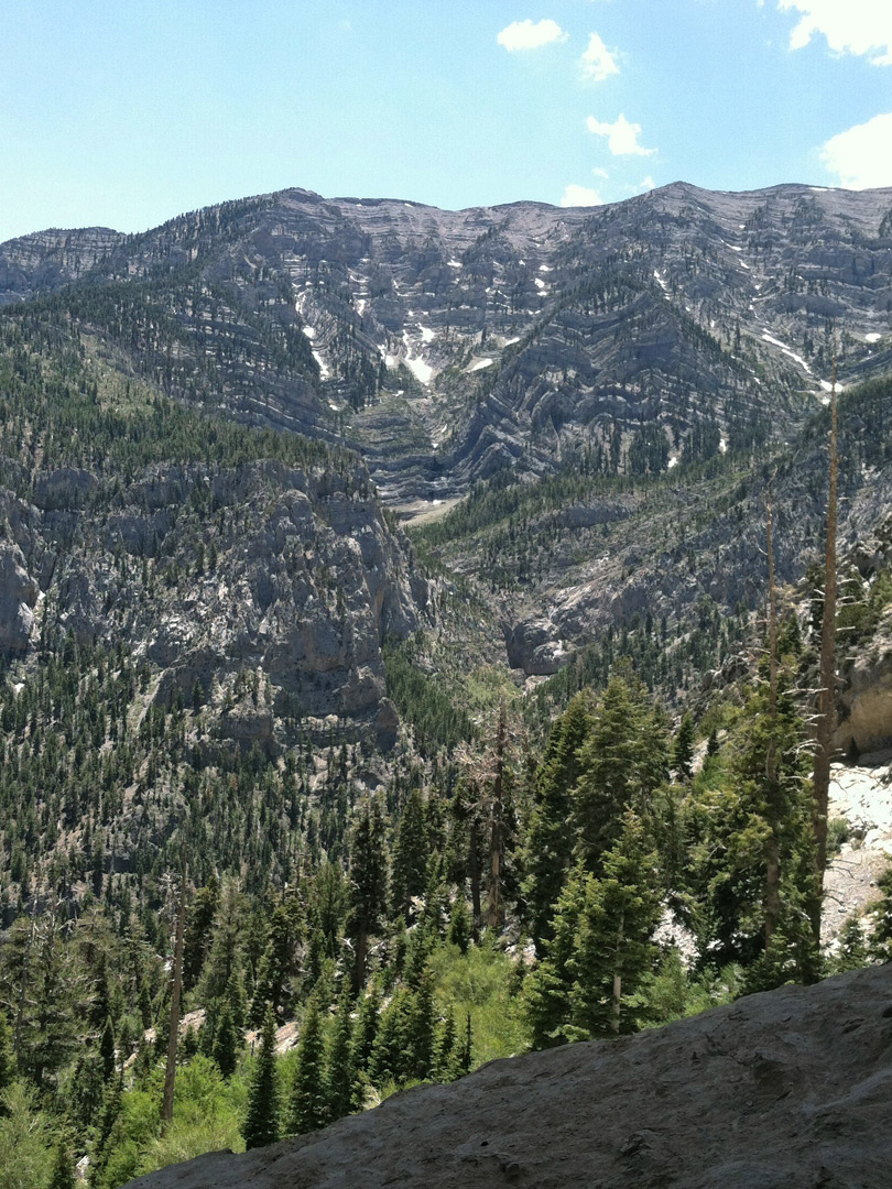 The upper end of Kyle Canyon - view from Mary Jane Falls, looking across towards Big Falls and the ridge extending south from Charleston Peak