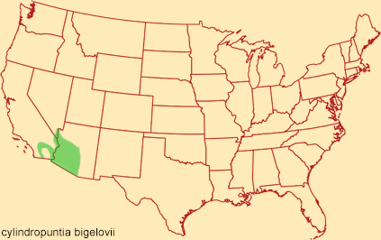 Cylindropuntia bigelovii is a plant of the Sonoran Desert, growing in exposed areas with full sun. It most resembles