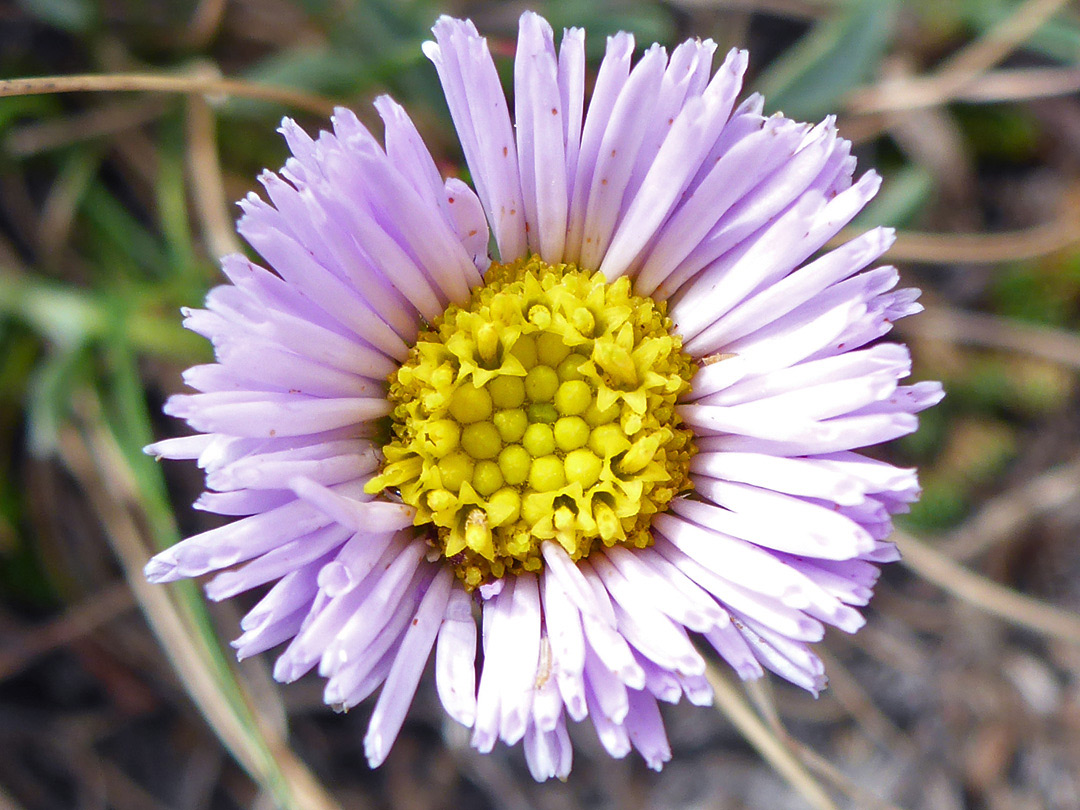 Pale purple ray florets - erigeron leiomerus (rockslide daisy), Glacier Trail, Great Basin National Park, Nevada