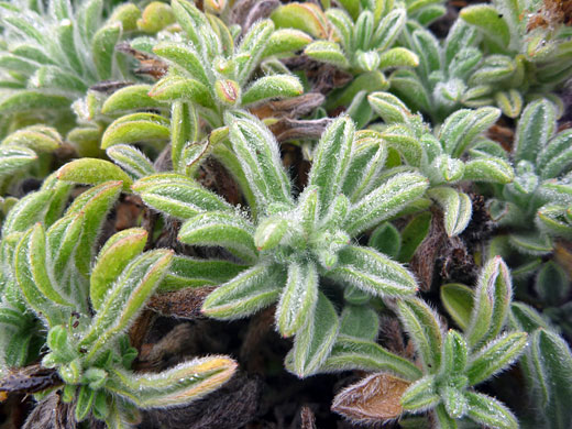 Heterotheca sessiliflora is a variable plant, with four subspecies, inhabiting a range of different environments. The genus name refers to the flowers, which form directly at the upper leaf node, without a recognizable stalk (sessile). Stems grow upwards or sideways, branch freely, and, like the leaves, have a covering of long, bristly, glandular hairs. Leaves also lack stalks, are densely hairy, and are often folded up along the axis.