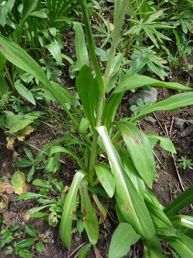 Basal, spatulate leaves of hymenoxys hoopesii (orange sneezeweed), along the Sneffels Highline Trail, San Juan Mountains, Colorado