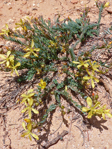 Linum kingii, a perennial, is a low-growing, somewhat variable species that branches freely and has overlapping, tightly clustered leaves; it is found in medium to high elevation areas from eastern Nevada to southwestern Wyoming.