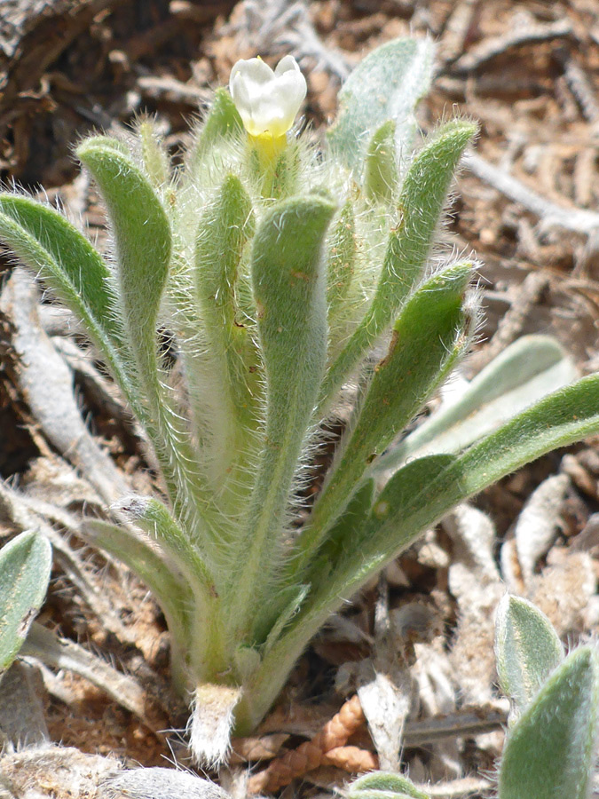 Oblanceolate basal leaves of oreocarya humilis, in Red Canyon, Capitol Reef National Park, Utah