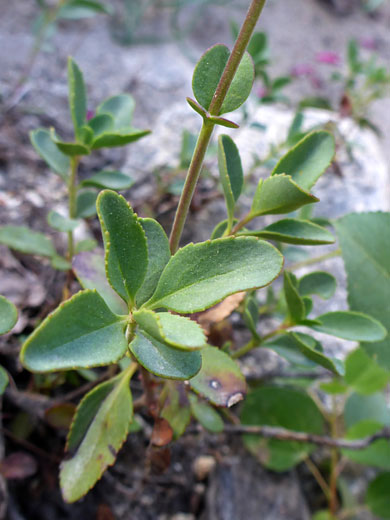The plant is shrublike when mature, as the lower portions of the stems become woody. Rocky locations are favoured, at medium to high elevations. There are three varieties (var berryi, var newberryi, var sonomensis), differing in corolla dimensions, corolla color and whether the stamens are included or exserted.