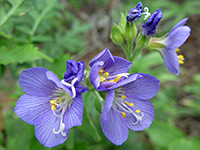 Polemonium foliosissimum is a pretty plant, and quite noticeable; it grows to a height of 3 feet, producing one or several stems that bear compound leaves at the base and at intervals most of the way to the tip. Leaves and stems may have a slightly glandular hairy surface.