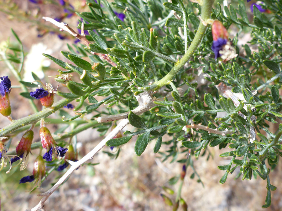 Small, hairy leaflets; psorothamnus arborescens, Hagen Canyon, Red Rock Canyon State Park, California