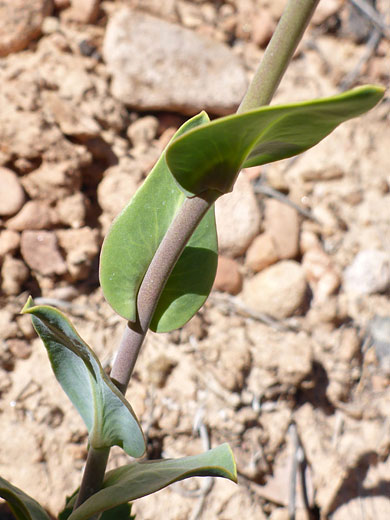 Two varieties are the common, widespread var cordatus which has obovate to spatulate basal leaves, with rounded tips, and the much rarer var piutensis (found only in a few scattered locations in Kern County, California), which has narrowly oblanceolate basal leaves, with pointed tips.
