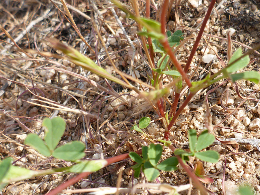 Red stems and green leaves; trifolium gracilentum, Antelope Valley Poppy Reserve, California
