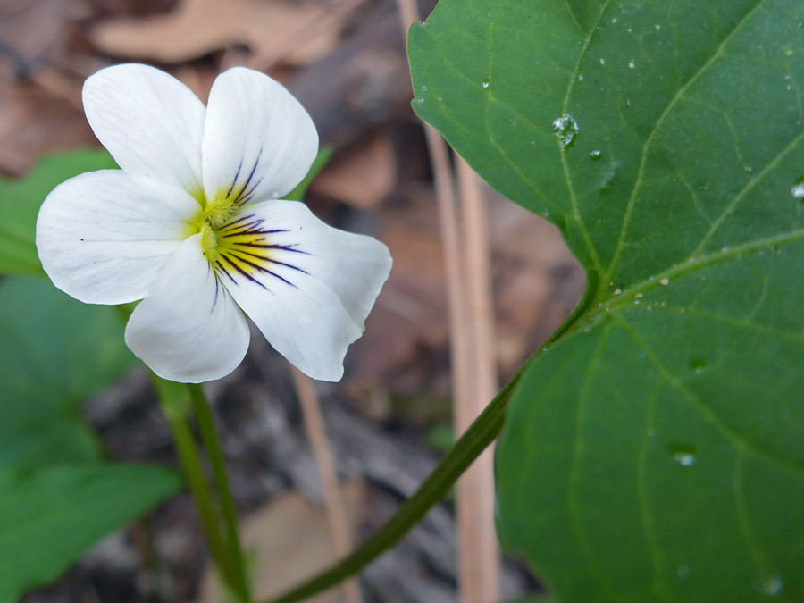 Single flower of viola canadensis, Long Canyon Trail, Sedona, Arizona