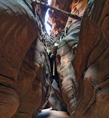 The only possible problem is a pile of boulders, 1.5 miles from the end of the gulch, where the floor drops down by about 20 feet. A rope may be useful (and one is often left in place) but most people manage to climb down between the rocks. Each flood has the potential to make significant changes to the canyon, though, so these boulders may be more of an obstruction on some occasions. There is no drinkable water except for a clear, shallow stream that flows for the last half mile before the confluence with the Paria River.