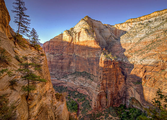 East Rim Trail, beginning at a former parking area 2 miles from the north end of the Zion Canyon Scenic Drive, and reached from stop number 6 of the Zion shuttlebus - the same starting point for a visit to Weeping Rock.