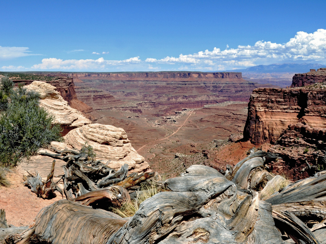Keywords: Canyonlands National Park, the Island in the Sky, Utah, dead trees, dirt tracks, unpaved roads, red rocks, canyons