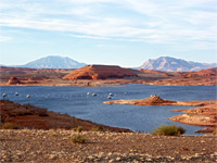 Page, where various beaches, resorts, marinas and campsites are found along the shoreline, with every necessary facility available in town. At the far northeast end of the lake there are basic services and a few tracks leading to the water at