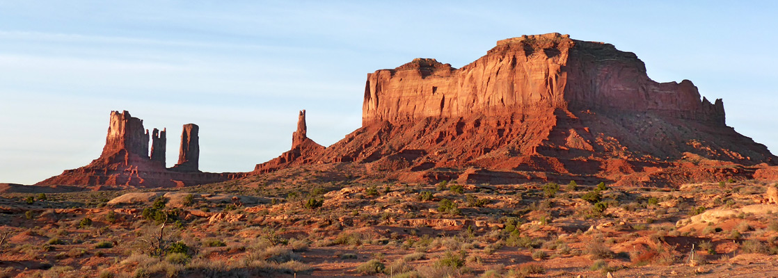 Monument Pass, near which several dirt tracks leave both east and west and criss-cross the red sandy landscape, offering a more close up appreciation of the rock formations, although these roads lead to Navajo residences so some discretion is necessary when visiting. This is also a good area for