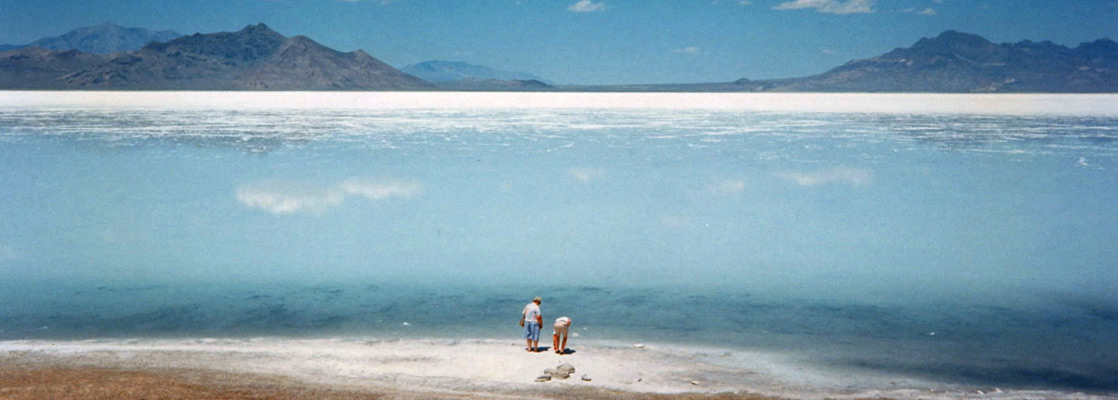 Lake Bonneville, that extend south and west from the lake - this huge desert is almost completely white and level for over a hundred miles in some directions. It is said to be possible to see the curvature of the Earth at the horizon.