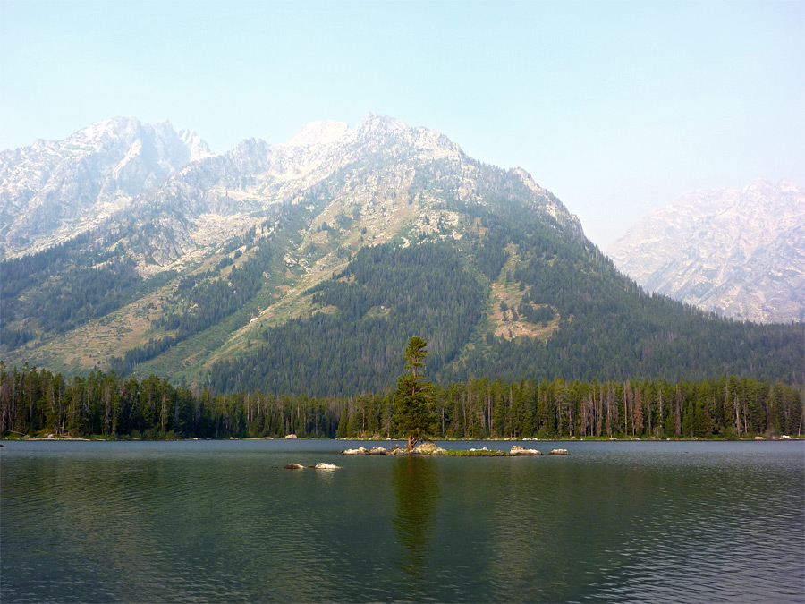 Small island in Leigh Lake; Rockchuck Peak and Mount St John beyond
