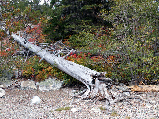 Teton Range - the east shores are bordered by thick pine/fir forest but the land rises very steeply by 5,500 feet just to the west, and both destinations provide less-visited alternatives to