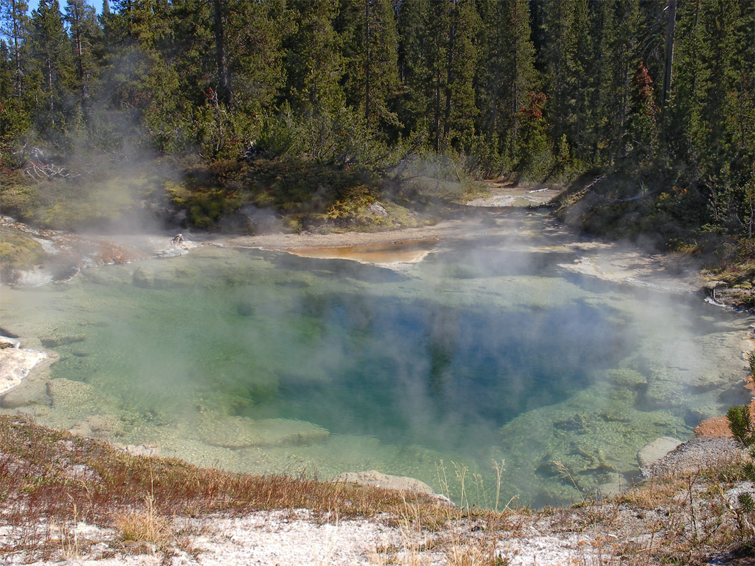 Keywords: Yellowstone National Park, Shoshone Geyser Basin (Western Group), Wyoming, water, pools, streams, geyser basins, thermal features, forest, woodland, trees, steam